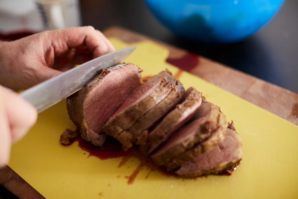 - Den geschmorten Rinderbraten aufschneiden, Beilagen dazu und anrichten! Guten Appetit!